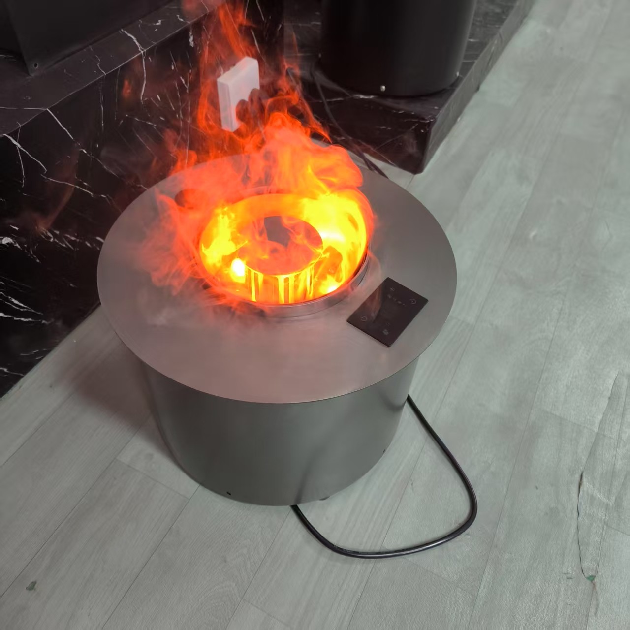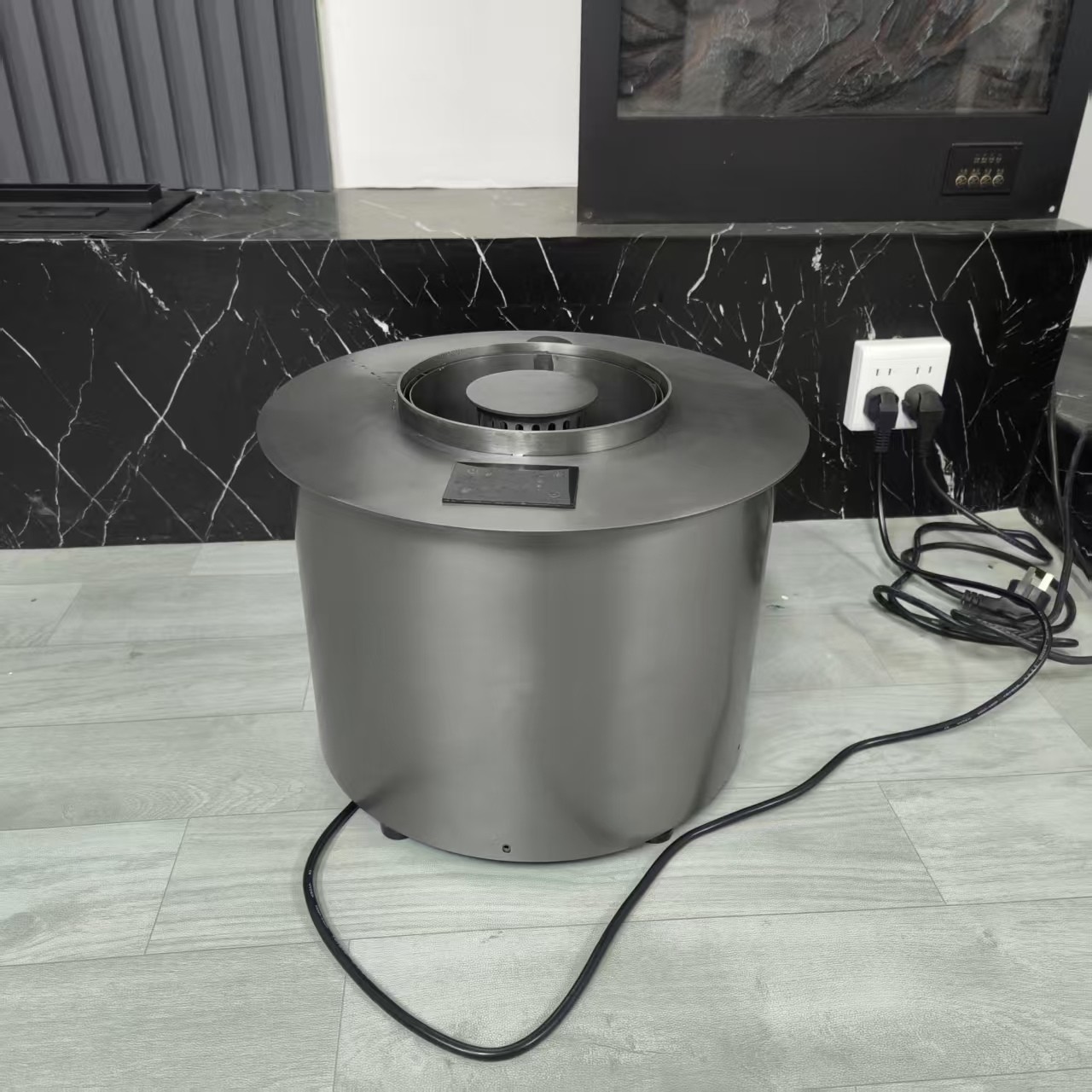 304不锈钢电镀雾化装饰款壁炉,参数;电镀灰钛色,直径30cm 高度28cm 定制款,最小直径可做26cm,高度最矮可做20cm圆形样式的。
